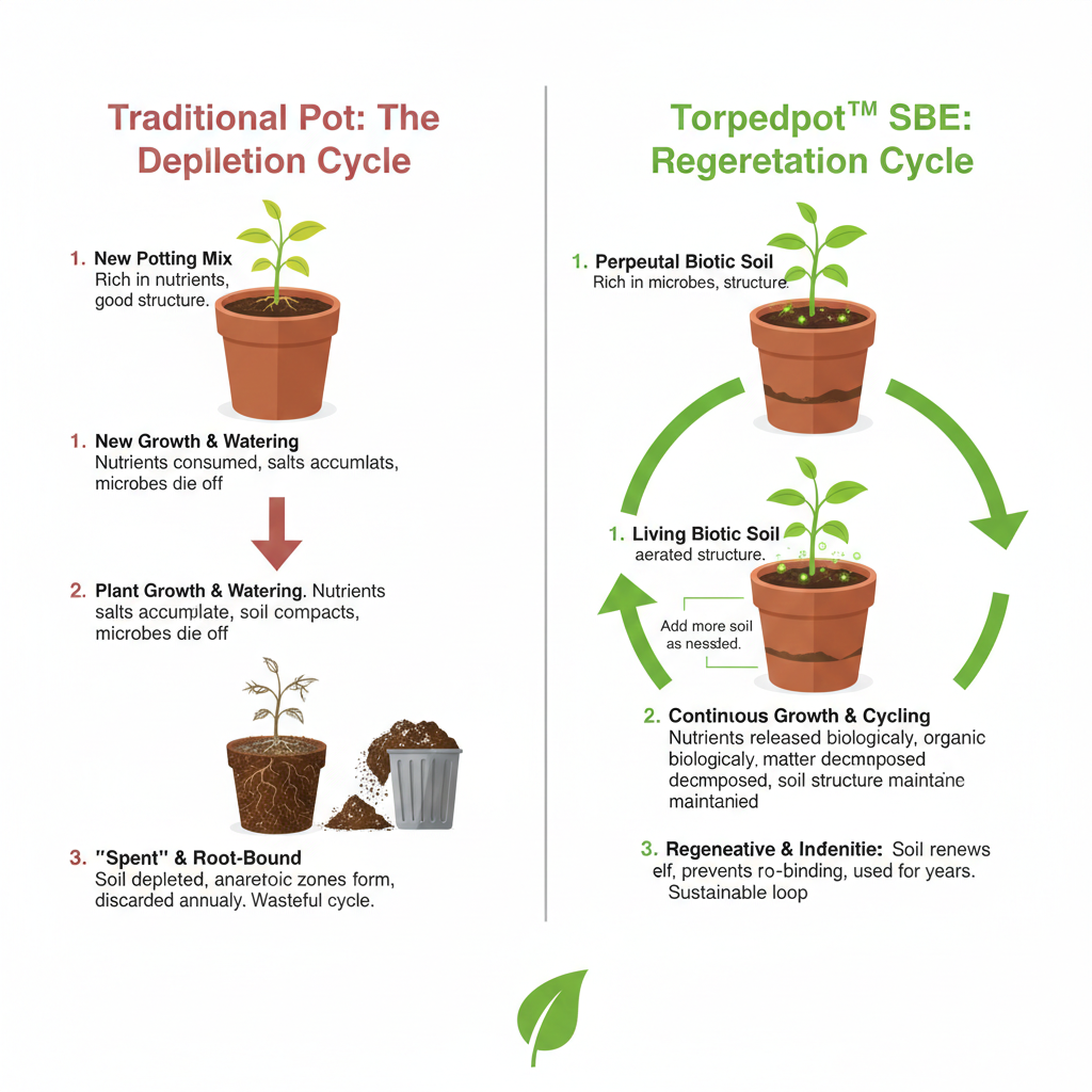 Torpedopot™ Hummer is a small pressurized irrigation container that grows your plants 24 hours a day—you don’t have to be there! It can outgrow any planter in the world. It has a small, compact, aesthetically pleasing, and powerfully functional design. The growing chamber is filled with nutritious food that plants will eat during the growing season. You can network with Hummers to create the largest pressurized plant plumbing community.